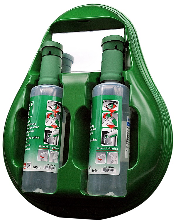 Il kit per la pulizia oculare è composto da una stazione di lavaggio realizzata con un supporto frontale trasparente e chiusura antipolvere.