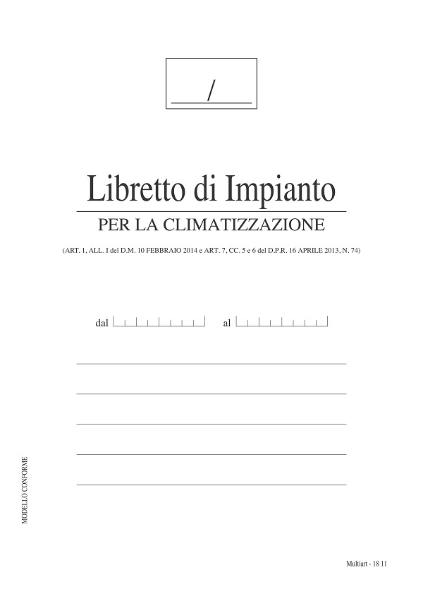 Il libretto per l’impianto di climatizzazione è un documento che va compilato a cura dell’istallatore o manutentore dell’impianto.