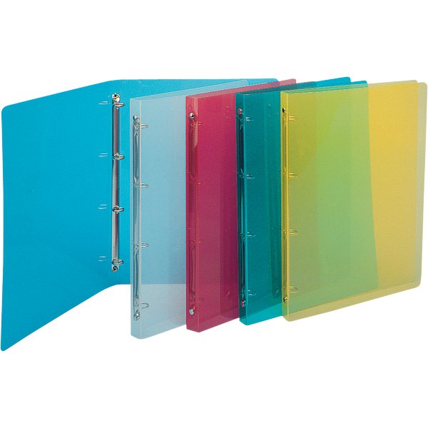 Raccoglitori in ppl 4 anelli in due formati e colori fluorescenti assortiti.