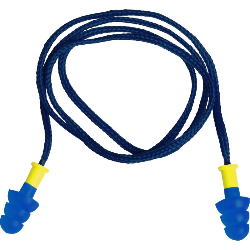 I tappi auricolari sono realizzati in TPR con cordino in tessuto di colore azzurro con un diametro di 7-11 mm.